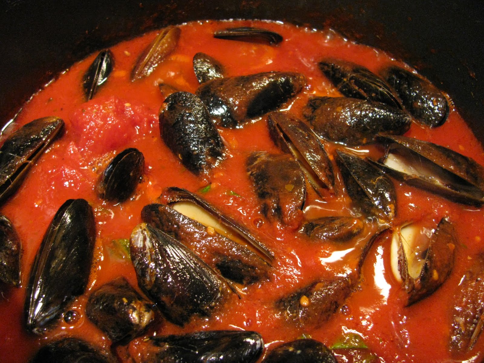 Add mussels to broth. Simmer, covered, for 5-7 minutes, or until mussels are opened. Discard any unopened mussels. Serve with Italian bread and an arugula salad. Thanks to my neighbor, Eric, the super cook, for adding just the right touch — he coupled the mussels with a hearty pasta, giving this dish wonderful depth and heft. Bravo!