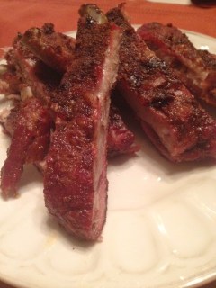 Our recipe for dry roasted ribs is a delicious alternative to slathering sugary, high-calorie, carb-laden sauce. Containing almost no sugar, all you need is an oven set at 300F for four hours, a little water, and the delicious ingredients that are listed below. We served these with our Poblano Cornbread. This rub works equally well with chicken, just turn up the heat to 375F after 3 hours and roast for another 30 minutes, until brown and crispy.