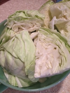 | Cabbage, cored and quartered, ready to jump into the pool! |